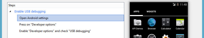 List Android devices installed on your PC and check that the one of your Android device is present to connect via USB.