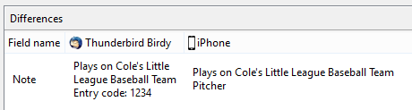 If an item is modified simultaneously on 2 devices, you can easily identify the differences between the two items to help you choose which version you wish to keep