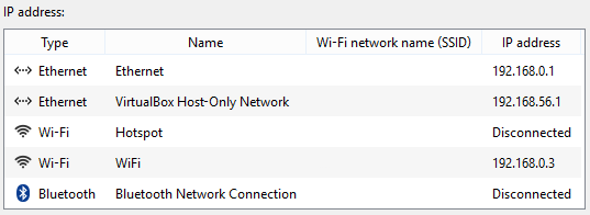 Ip addresses of your server are listed with detailed information to help you choose which one you want to use to connect wirelessly.