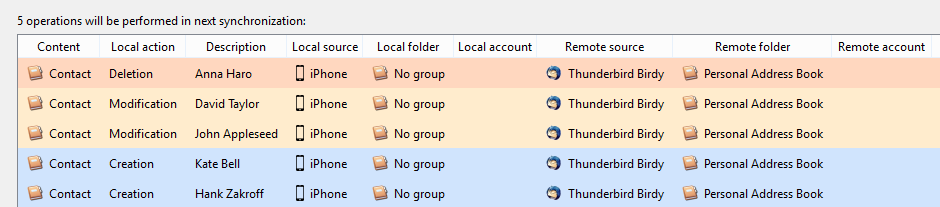 Before synchronizing, the creations, modifications or deletions to be performed can be previewed for more control and security. This is especially useful at first synchronization of after a change in the synchronization configuration.